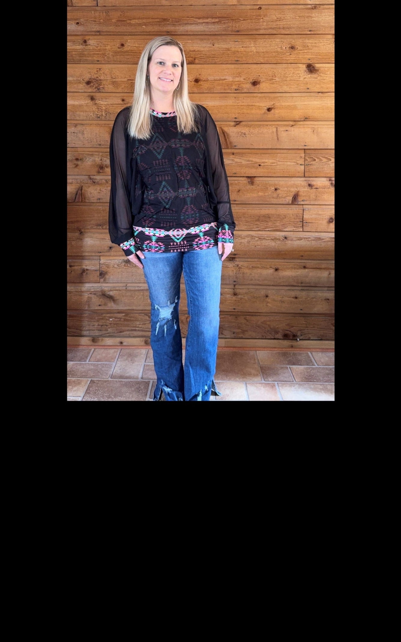 Acid Wash Cuff Sleeve Top